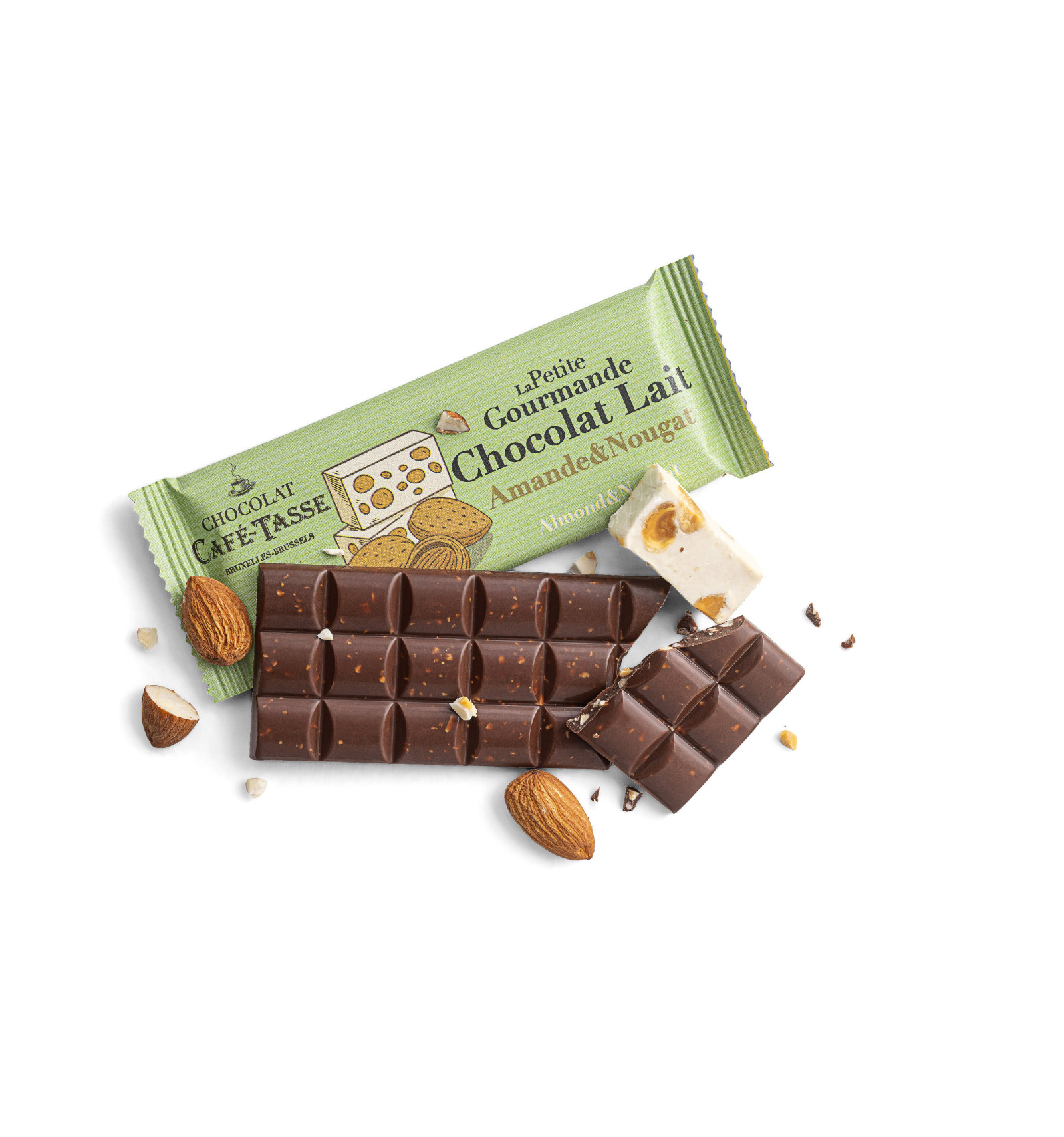 La Petite Gourmande Melkchocolade met Amandelen & Nougat 25 g is een tabletje smeltende melkchocolade, verrijkt met royale stukjes zachte nougat en knapperige amandelen.